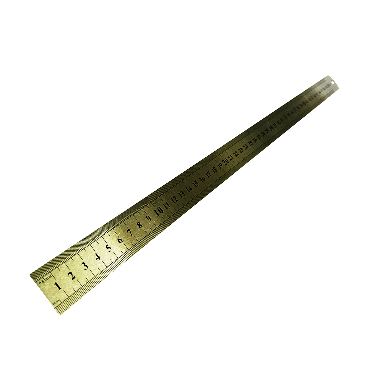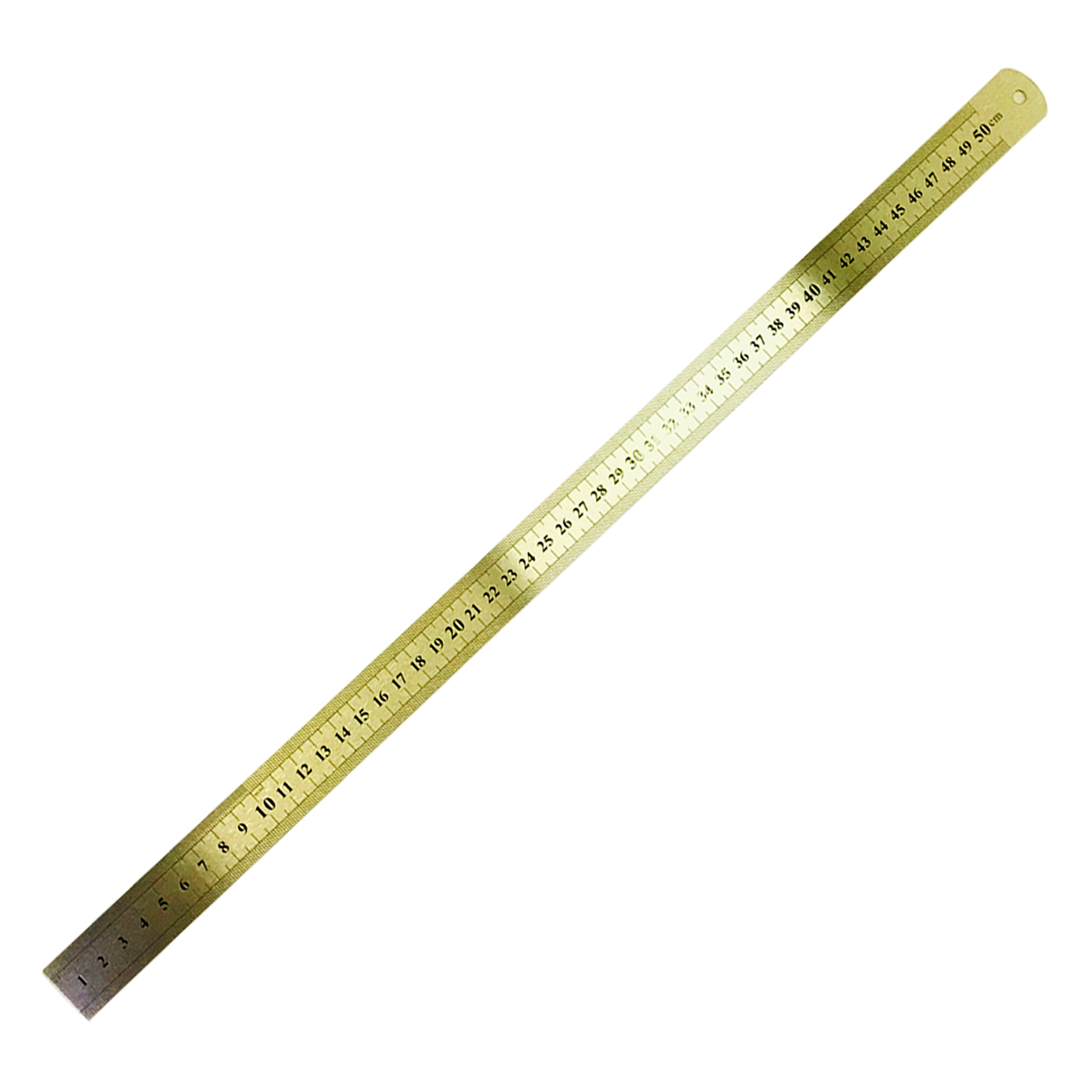 Линейка 50 см изготовлена из нержавеющей стали и имеет разметку в виде гравировки с дополнительной окраской делений сантиметры/дюймы. Шкала имеет удобный стартовый ноль, цена деления линейки равна 1 мм. Ровные грани позволяют чертить прямые линии и выполнять четкую разметку. В верхней части имеется отверстие для подвешивания.
